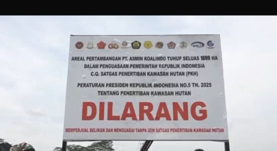 PAPAN Larangan dipasang Satgas PKH di atas lahan milik PT AKT di Kalimantan Tengah setelah Satgas PKH beekunjung ke lokasi tambang tersebut,